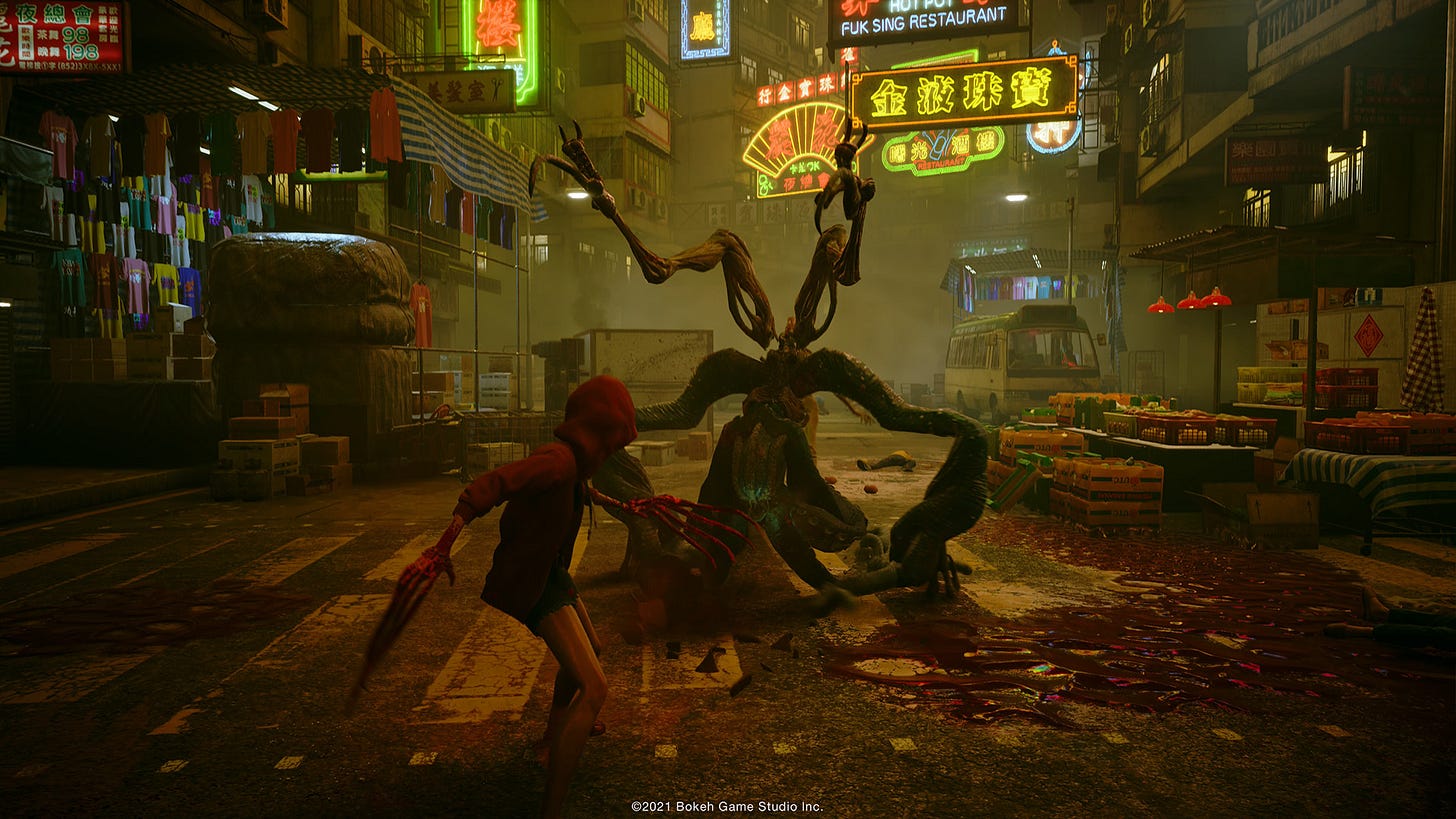 Slitterhead, at its core, is a 3rd-person action/horror game. These “Slitterheads” in question are monsters that have begun to infect people in the city of Kowlong (basically a fictionalized version of Kowloon Walled City) during the 90s. So, imagine a cramped, little city with lots of high buildings and alleyways—and lots of prostitutes. It would probably stink, too, if you could smell video games.
